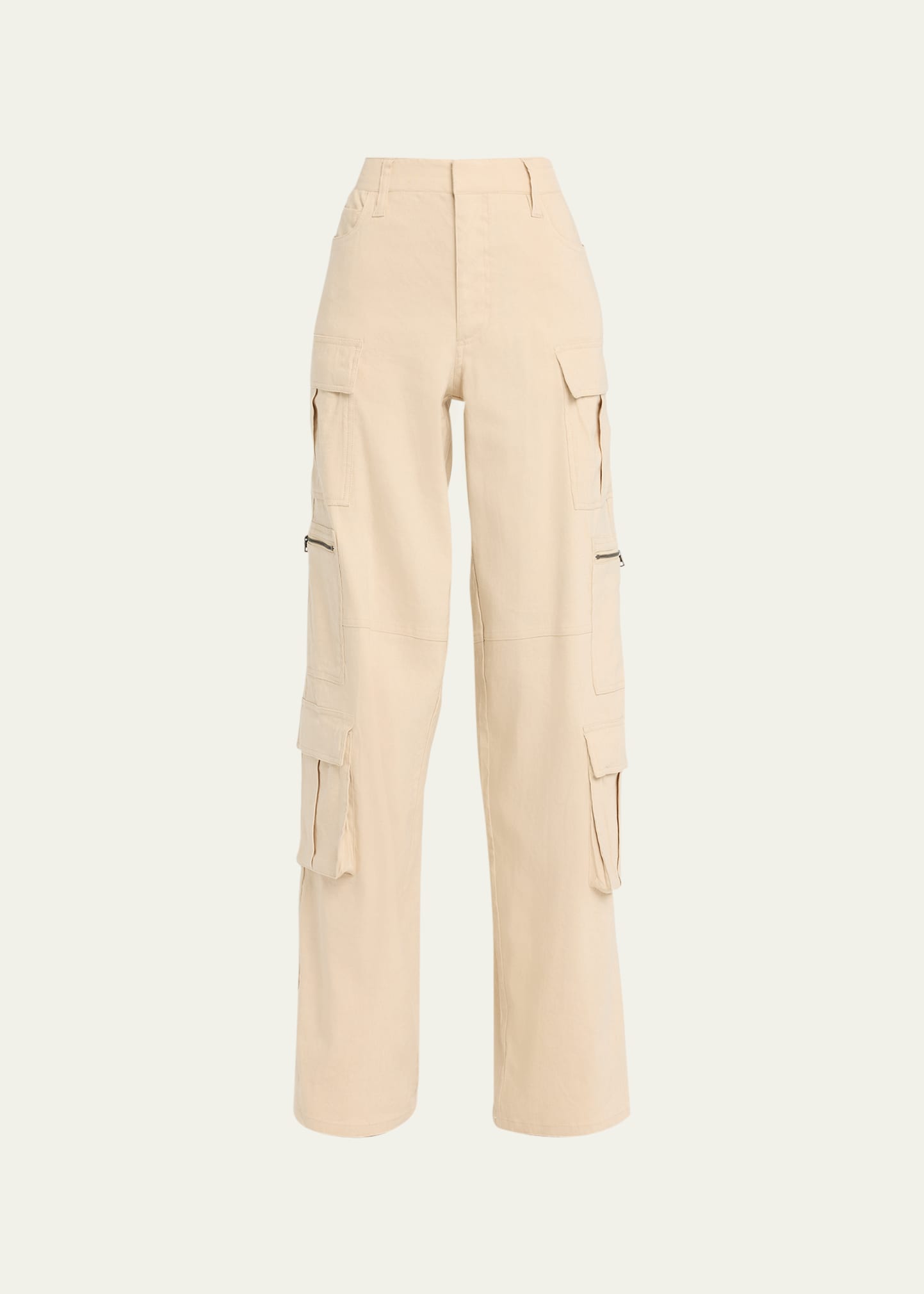 Alice + Olivia "Rav" linen-blend pants Five-pocket style Low rise sits at hip Functional leg cargo pockets Full length Wide legs Concealed hook/zip fly; belt loops Linen/viscose/elastane Lining: Cotton Dry clean Imported
