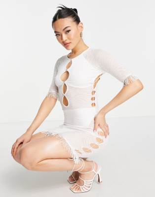 Dresses by Rebellious Fashion The kind of dress that deserves attention Crew neck Cut-out detail Fringe trims Body-conscious fit