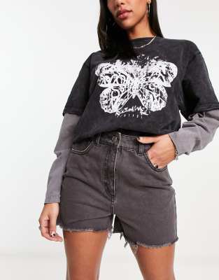 Shorts by Reclaimed Vintage Exclusive to ASOS High rise Belt loops Five pockets Raw-cut hem Mom fit