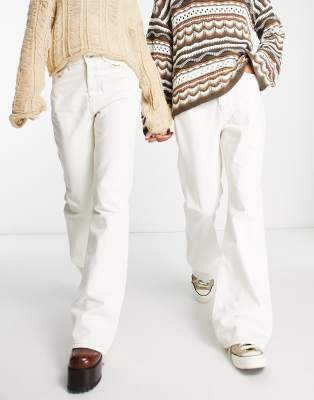 Reclaimed Vintage unisex 01' relaxed flare in ecru with contrast stitch-White