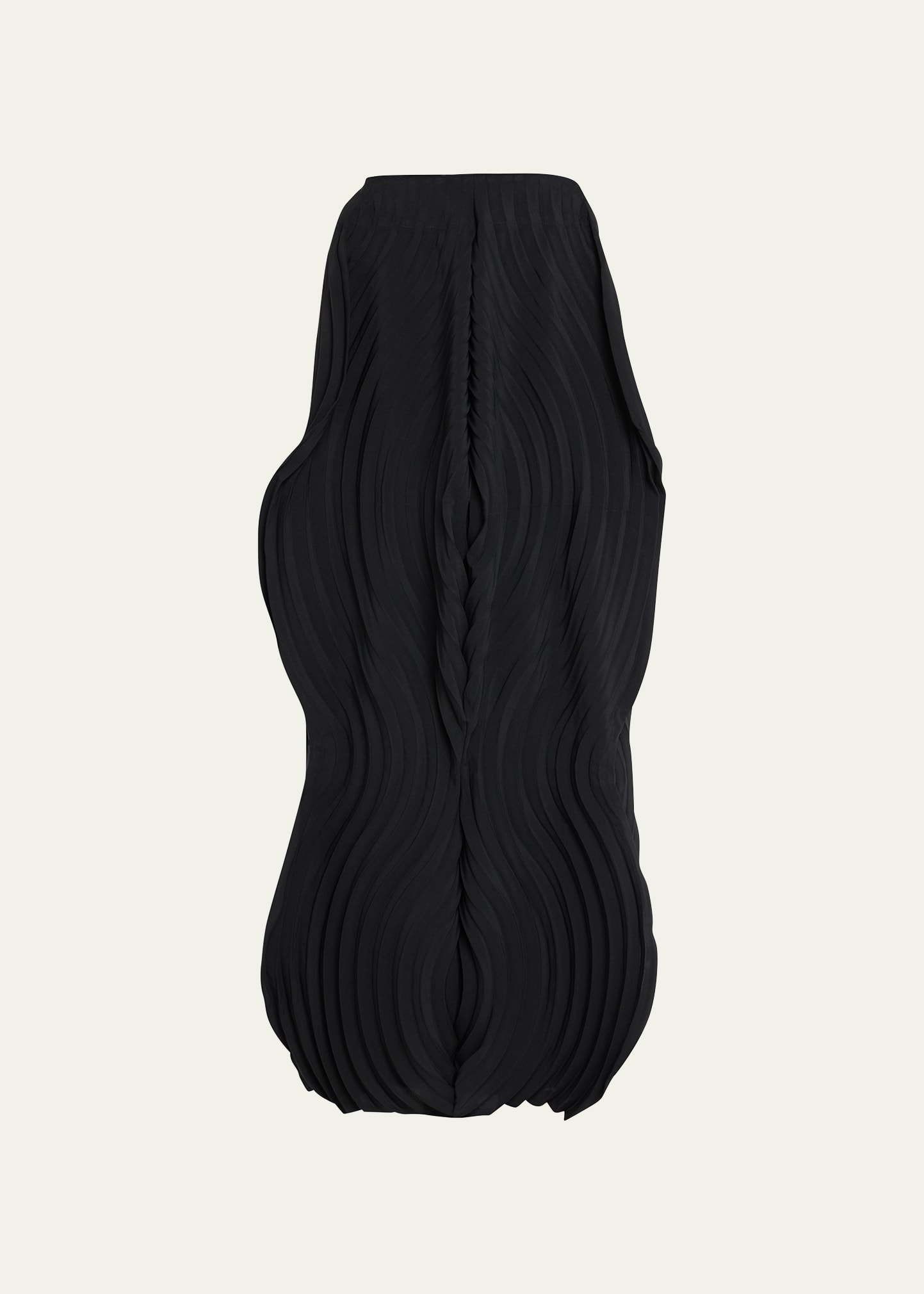 Issey Miyake "Resonant" skirt with wavy pleat contruction High waist A-line silhouette Full length Polyester Machine wash line dry Made in Japan