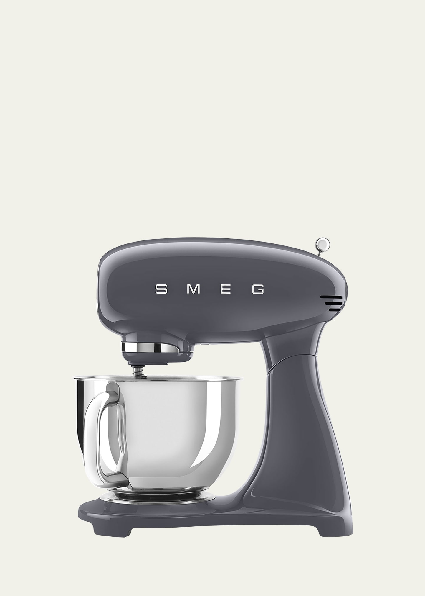 50's retro style aesthetic full-color stand mixer comes with handled bowl Optimum planetary rotation 10 speed settings Smooth start system Safety lock when the head is tilted up Overload motor protection Direct drive motor Frontal accessory port Anti-slip feet Power: 800 W Bowl capacity, 4.8 L Approx. 16"W x 8.7"D x 15"T Cord length: 3 ft Plastic/metal Item Weight (Lbs.): 17.0 Wipe clean Imported