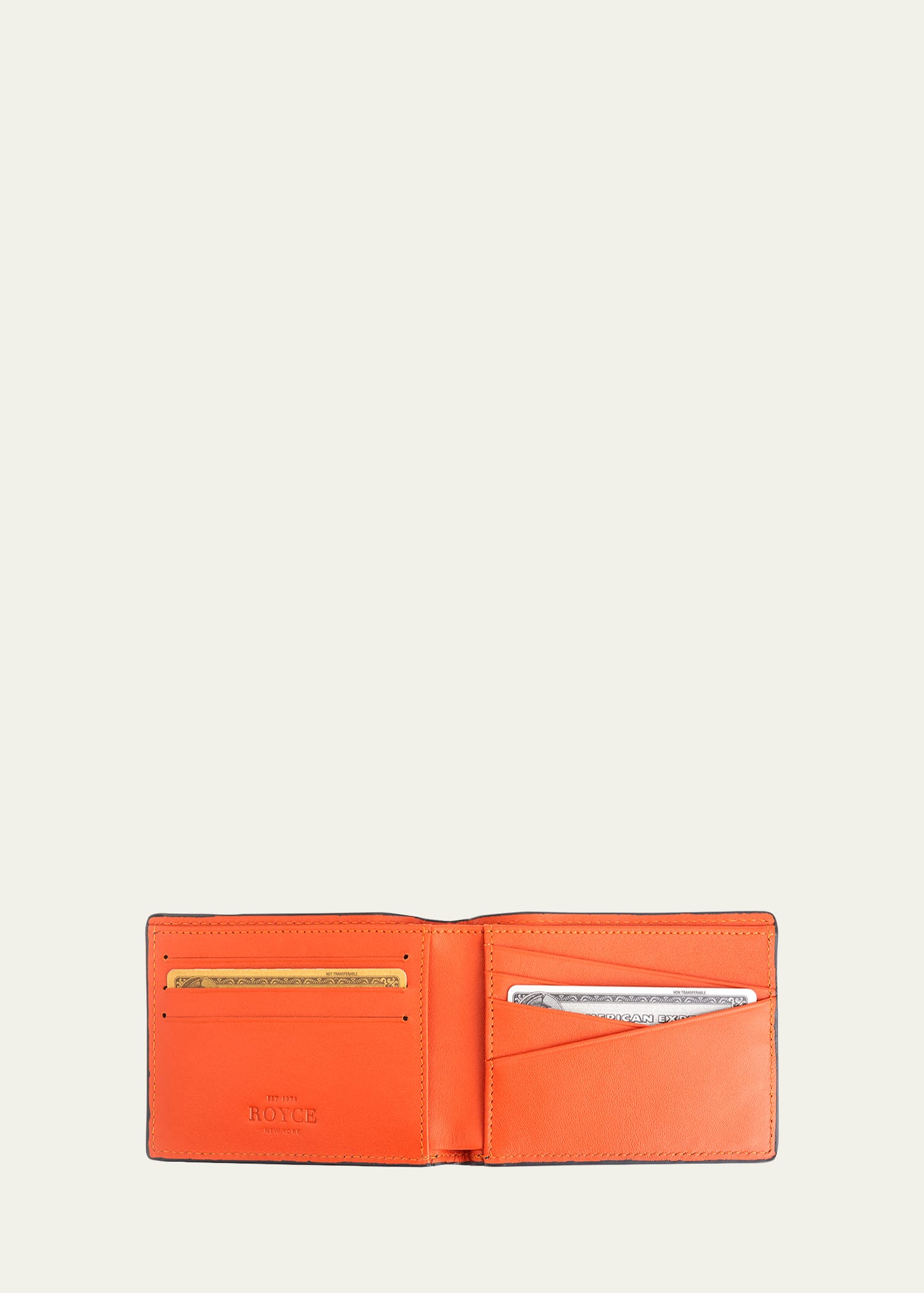 The ROYCE "100 Step Wallet" is a tribute to over 40 years of the Bauer family's tradition of expert craftsmanship and attention to detail in the United States. Utilizing the finest genuine leather in the world, each wallet is meticulously handmade and designed with the contemporary executive's needs in mind. It takes 100 steps of cutting and stitching to assemble this handsome wallet. A rich interior boasts a leather lined cash compartment as well as eight credit card and ID slots. US Governm.