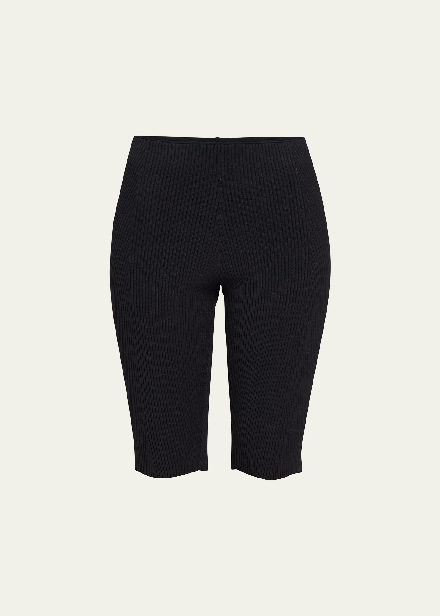 Giorgio Armani ribbed knit bike shorts High rise Flat front Above-the-knee hem Fitted Cotton Made in Italy