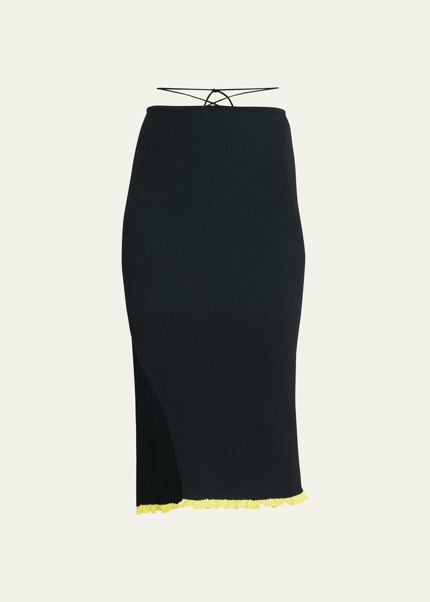 AZ Factory rib-knit skirt with contrast tipping High waist with drawstrings Straight silhouette Midi length Side slit Flounce hem Viscose/polyamide Made in Italy