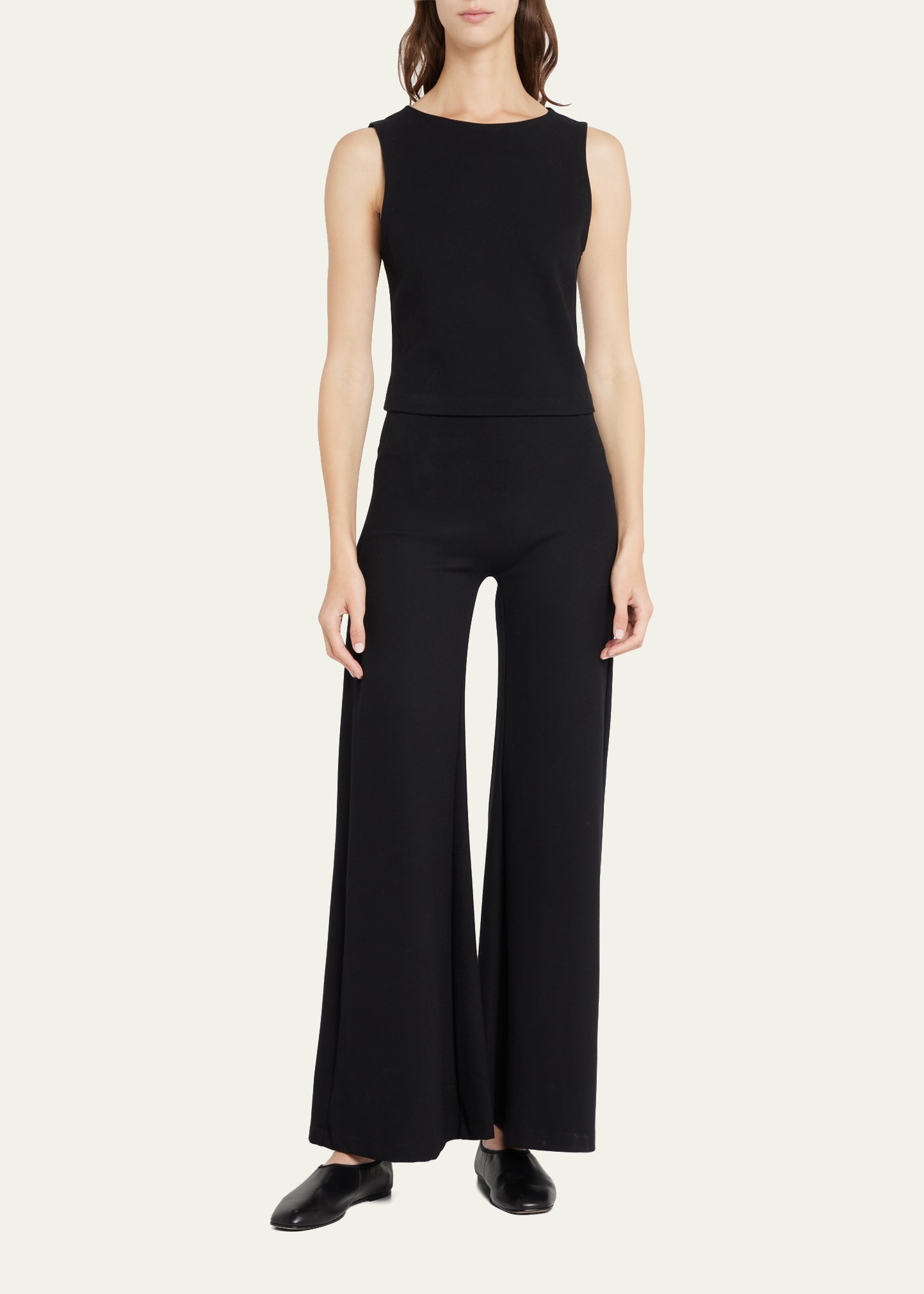 LESET "Rio" comfortable French ponte pants Approx. measurements: 11.6" rise; 31" inseam; 31.5" outseam High rise Elastic waistband Flat front Relaxed fit; wide legs Full length Pull-on style Viscose/polyamide/elastane Hand wash cold Made in USA from imported materials