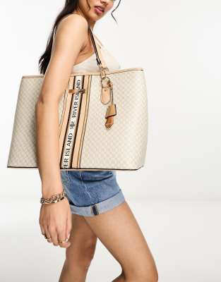 Accessories by River Island Bag yourself the ultimate accessory Monogram design Twin handles Gold-tone hardware Branded taping
