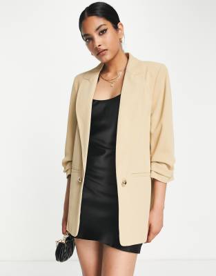 River Island pleated sleeve blazer in beige - part of a set-Neutral