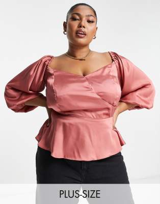 Tops by River Island Plus Waist-up dressing V-neck Volume sleeves Peplum hem Regular fit