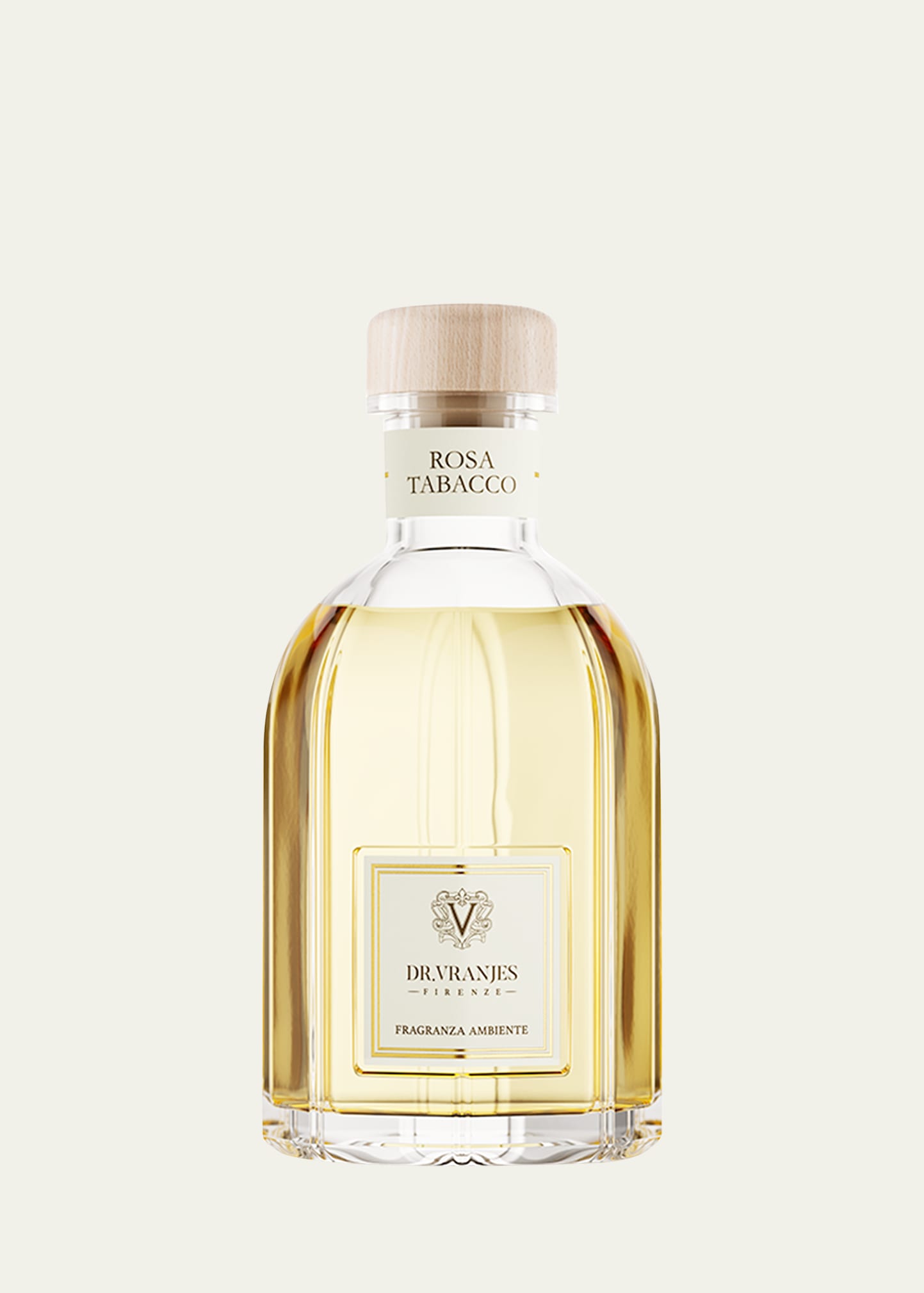 Dr. Vranjes Firenze Rosa Tabacco Diffuser, 42.2 oz. Rosa Tabacco is a rich, enticing and multi-faceted combination. It encapsulates the passion and warmth of a love story forged from the overwhelming determination of two lovers hailing from different places and cultures. The fragrance's olfactory pyramid traces the most important stages of this tormented yet emotionally charged love story. With its citrus and powdery notes, damask rose depicts the unforgettable memory of their first en.