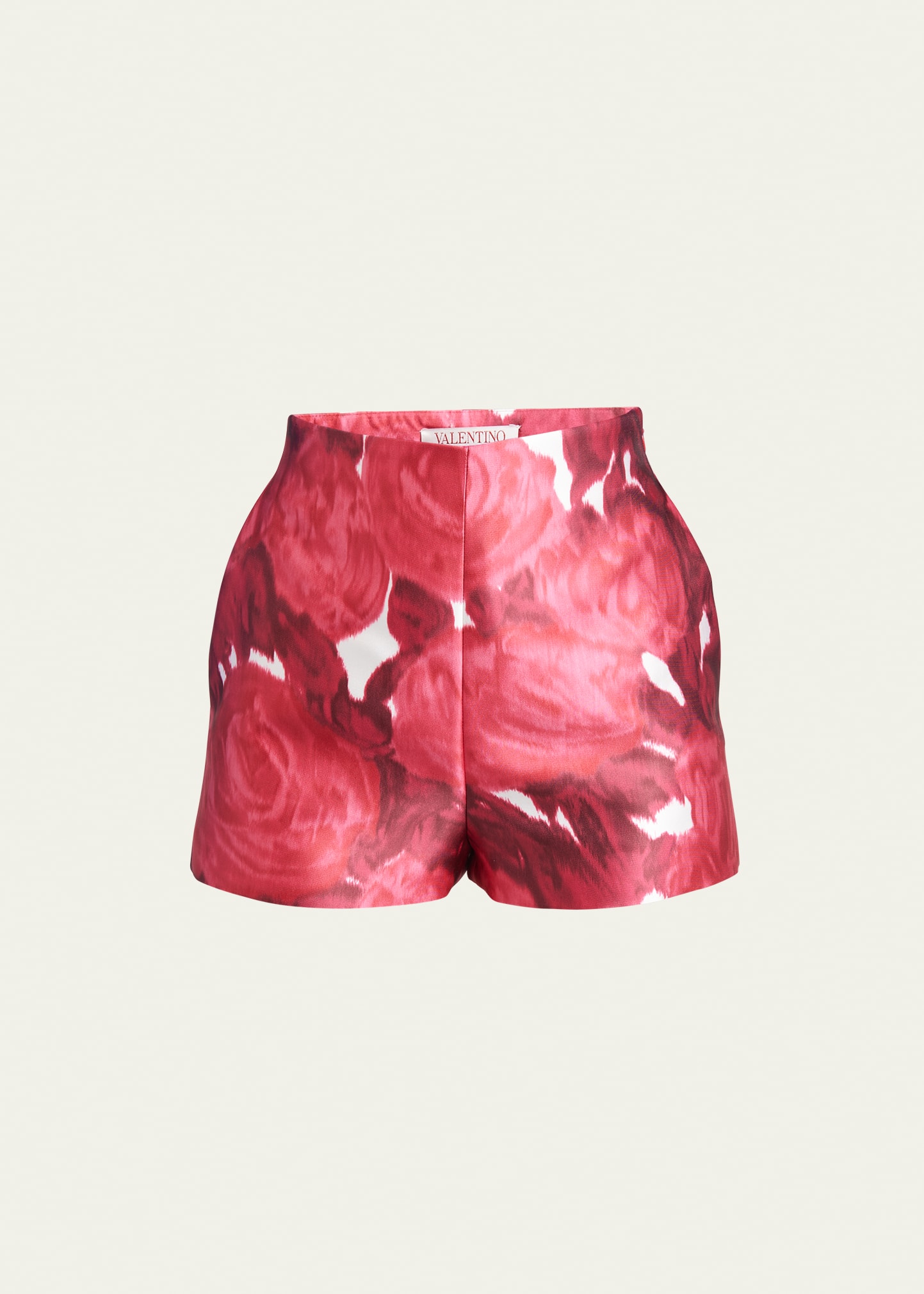 Valentino Garavani shorts in rose print Mid rise Fitted Mini length Concealed side zip Polyester/silk Made in Italy