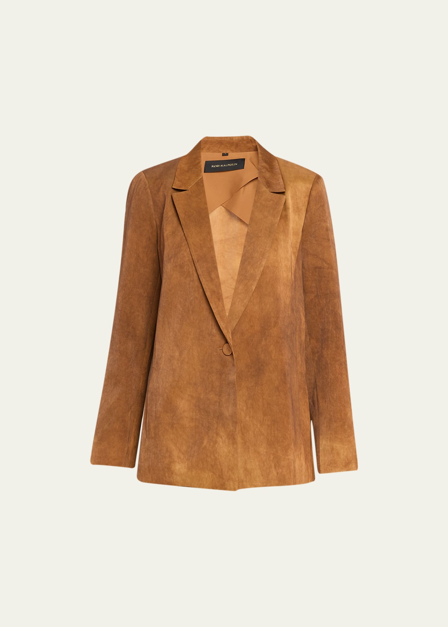 Kobi Halperin "Rosen" jacket in a tie-dye print Approx. 28"L from shoulders to hem Notched lapel; single-button front Long sleeves Button cuffs Relaxed fit Viscose Lining: Polyester Dry clean Imported