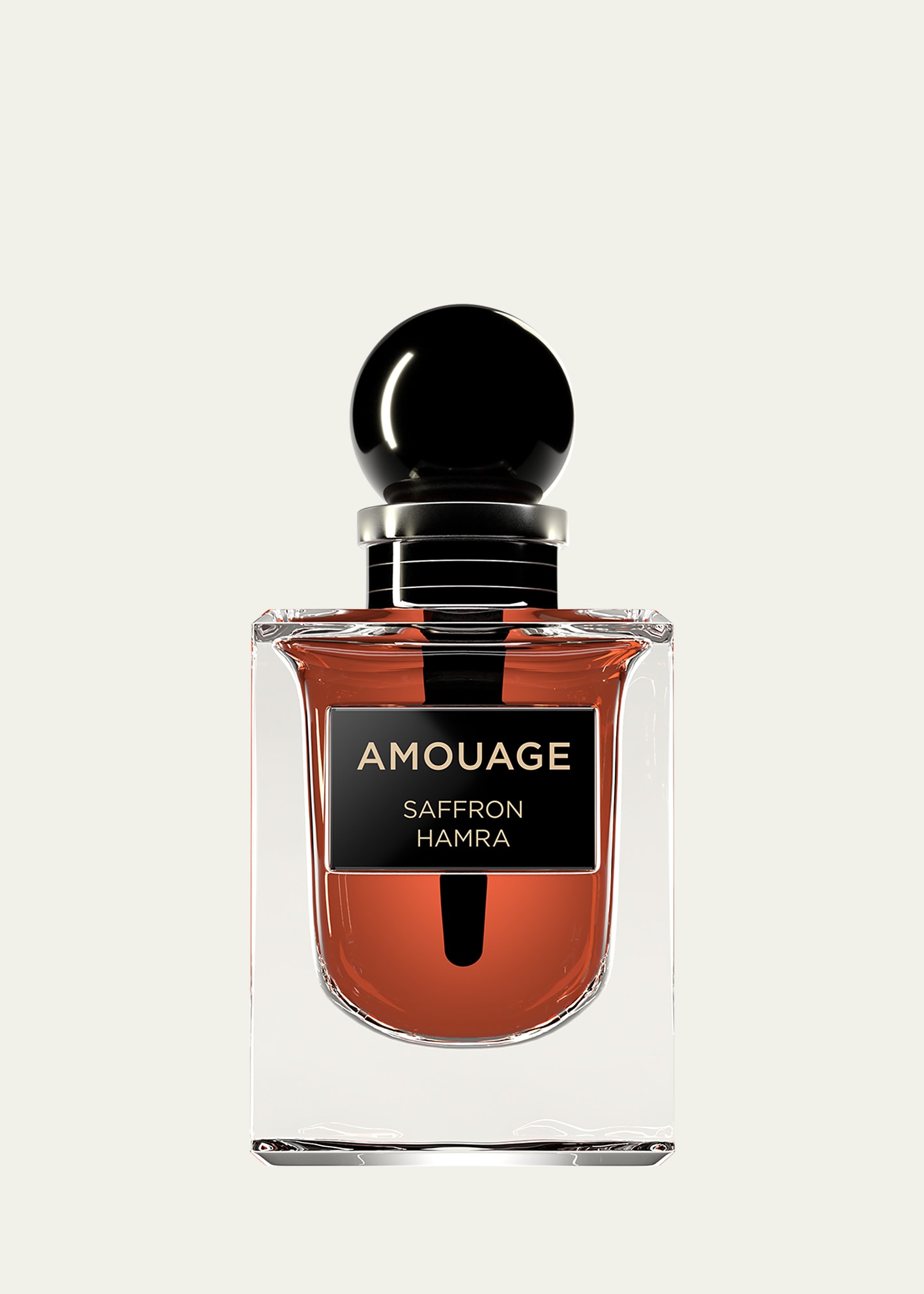 Amouage Saffron Hamra Attar, 0.4 oz. The supreme opulence of Saffron coils around a deeply sensual Rose Centifolia Absolute under leathery fumes of burning Cade wood. The luxurious union of a King and Queen in the stark redness of the Hamra Mountains. How to Use: Using the dabber, gently apply a drop on your pulse point in a swift smear. Very gently, dab your wrists together so as to wake the Attar up. You may also apply a single drop of Attar to the tip of your finger, then dab your pul.