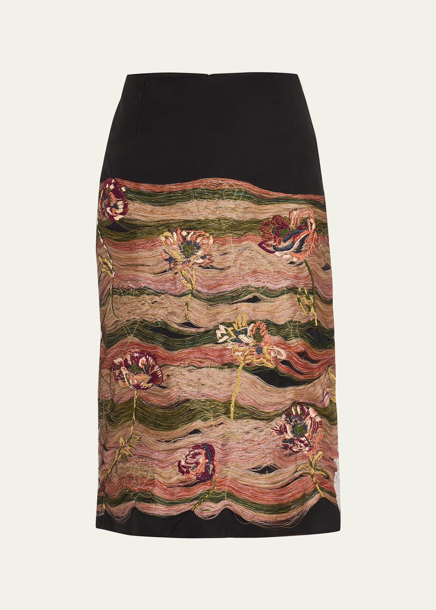 Dries Van Noten "Salby" midi skirt features embroidered floral details throughout Mid-rise; concealed back zip Hem hits around the knee Skirt falls straight from hip to hem Viscose Dry clean Imported