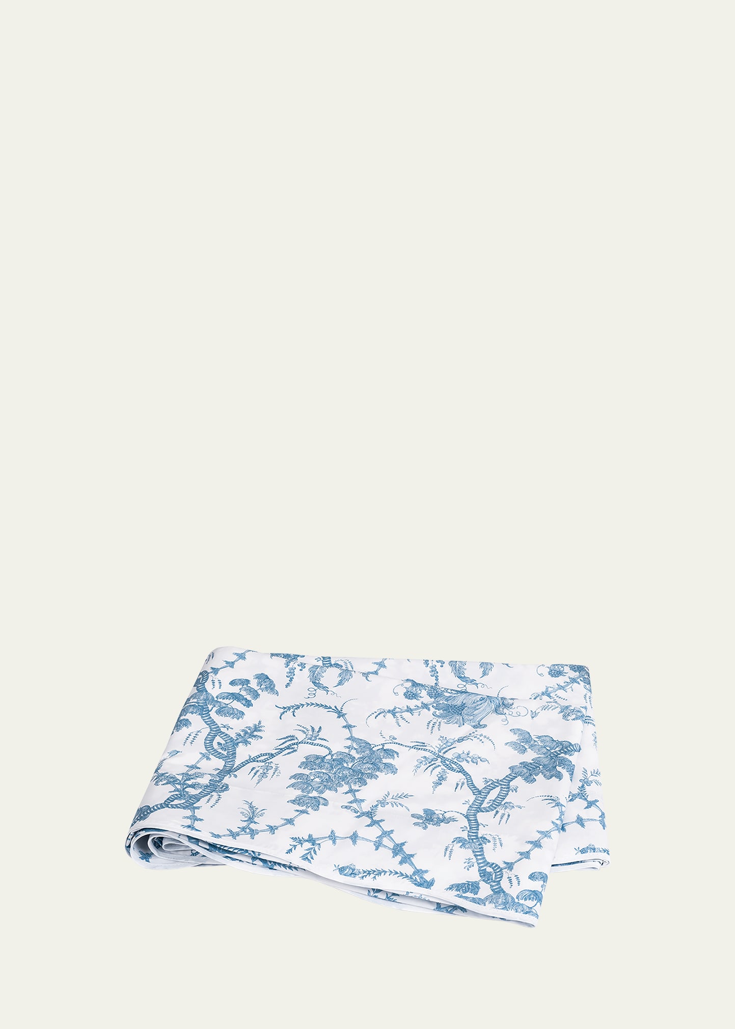 Here to bring some toile de jouy to your bed, Schumacher's San Cristobal will guarantee the sweetest of dreams Though a faithful reproduction of an 18th-century document, this pattern has a remarkably modern sensibility. We've paired it with our lightweight, super-luxe 500 thread count Luca Egyptian cotton percale and finished it with a subtle scalloped taped edge Flat sheet made of cotton percale Approx. 94"L x 112"W Machine wash warm Made in the USA from imported materials