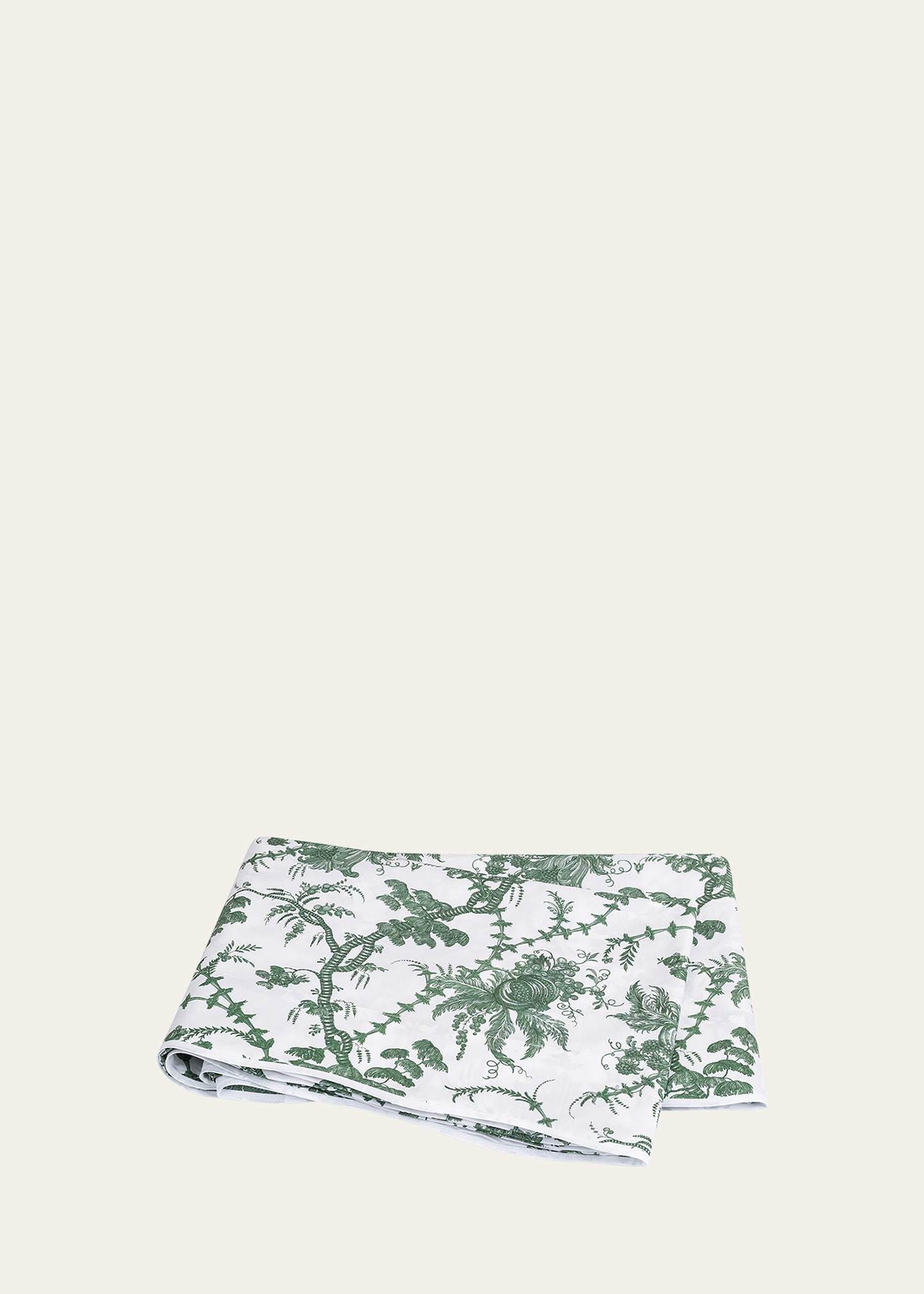 Here to bring some toile de jouy to your bed, Schumacher's San Cristobal will guarantee the sweetest of dreams Though a faithful reproduction of an 18th-century document, this pattern has a remarkably modern sensibility. We've paired it with our lightweight, super-luxe 500 thread count Luca Egyptian cotton percale and finished it with a subtle scalloped taped edge Flat sheet made of cotton percale Approx. 112"L x 112"W Machine wash warm Made in the USA from imported materials