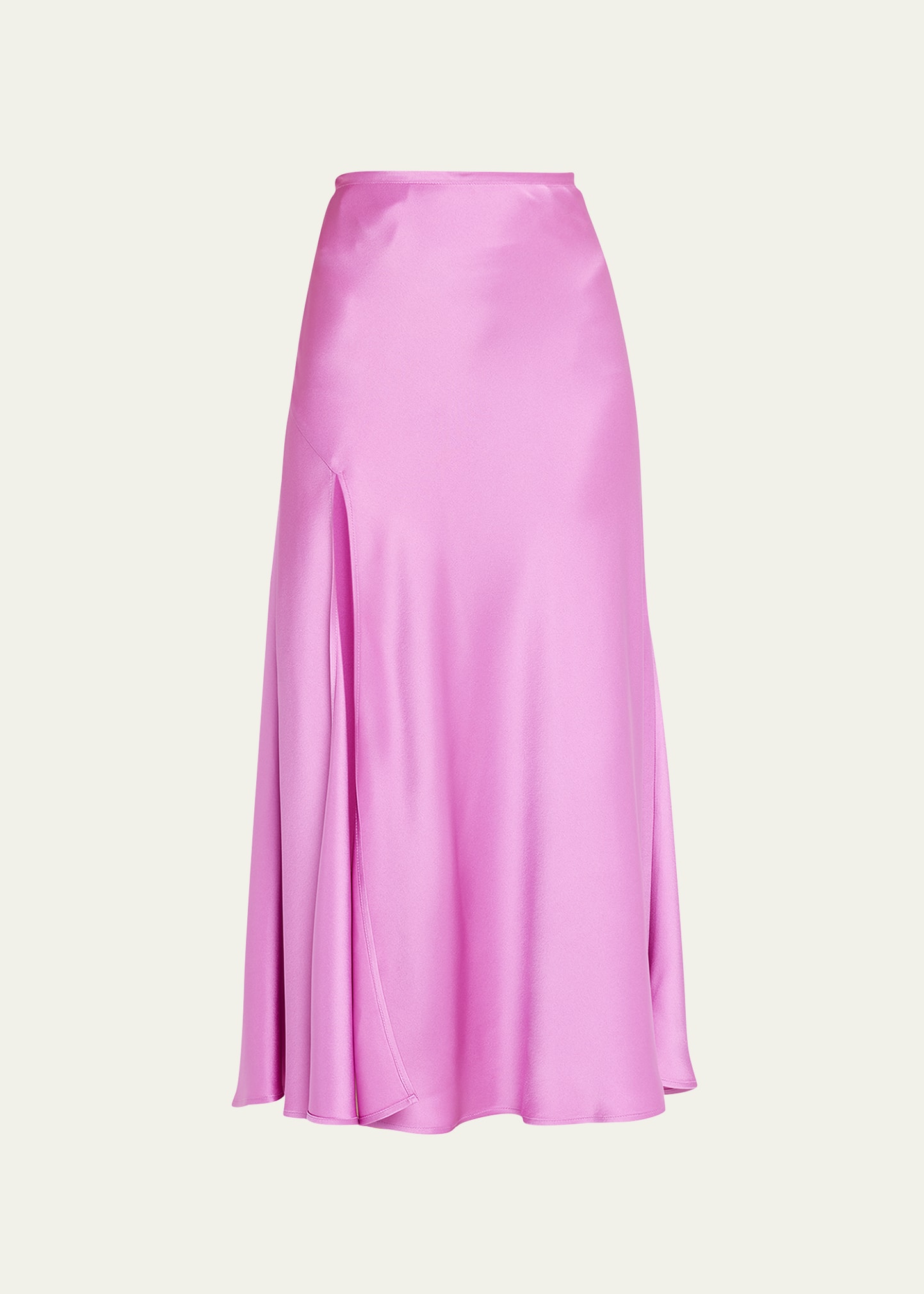 LAPOINTE satin skirt High rise A-line silhouette Midi length Side slit Side zip Acetate/viscose Made in USA from imported materials