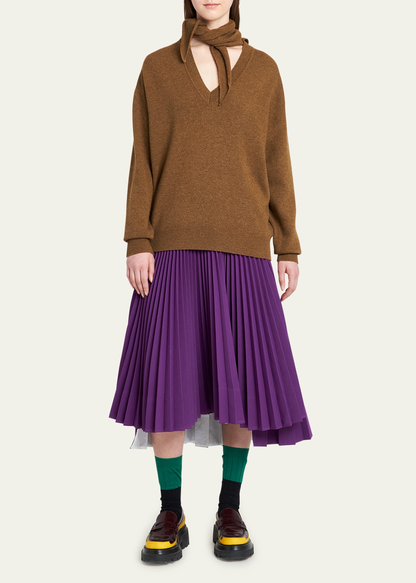 Plan C foulard knit sweater with scarf neck High neckline Long sleeves Relaxed fit Ribbed cuffs and hem Pullover style Wool/cashmere Dry clean Made in Italy