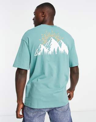 Selected Homme oversized t-shirt with mountain back print in turquoise-Blue
