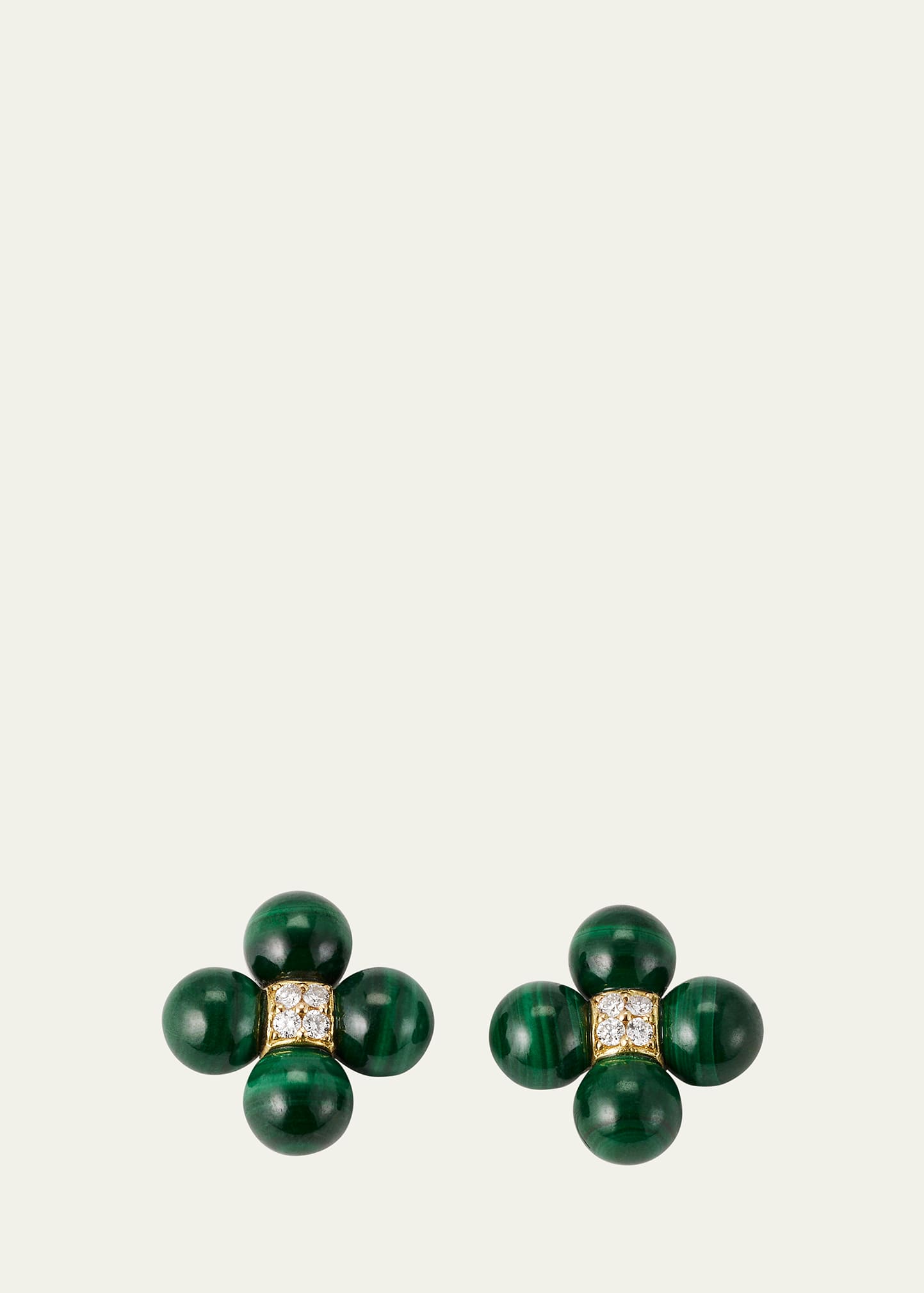 Paul Morelli earrings Approx. 5mm 18-karat yellow gold with brilliant-cut diamonds and malachite Diamond total carat weight: 0.11 For pierced ears Made in USA