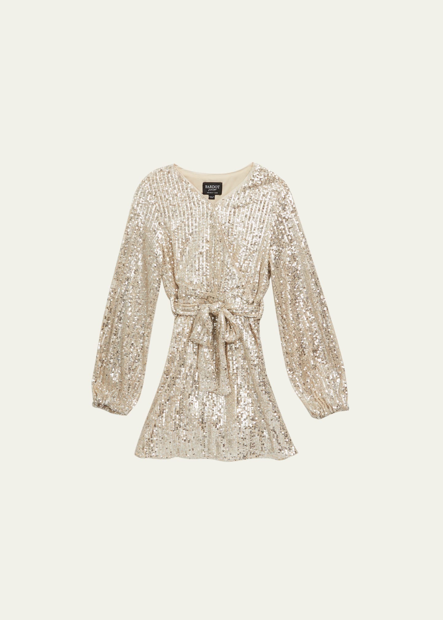 Electric energy. Igniting with dramatic impact when stepping into the light, this statement style fuses scintillating sequins and a contemporary rose quartz colourway with the simplicity of a wrap-dress silhouette. Featuring long balloon sleeves, a v neck Long Sleeve Polyester Hand wash, machine wash cold Imported