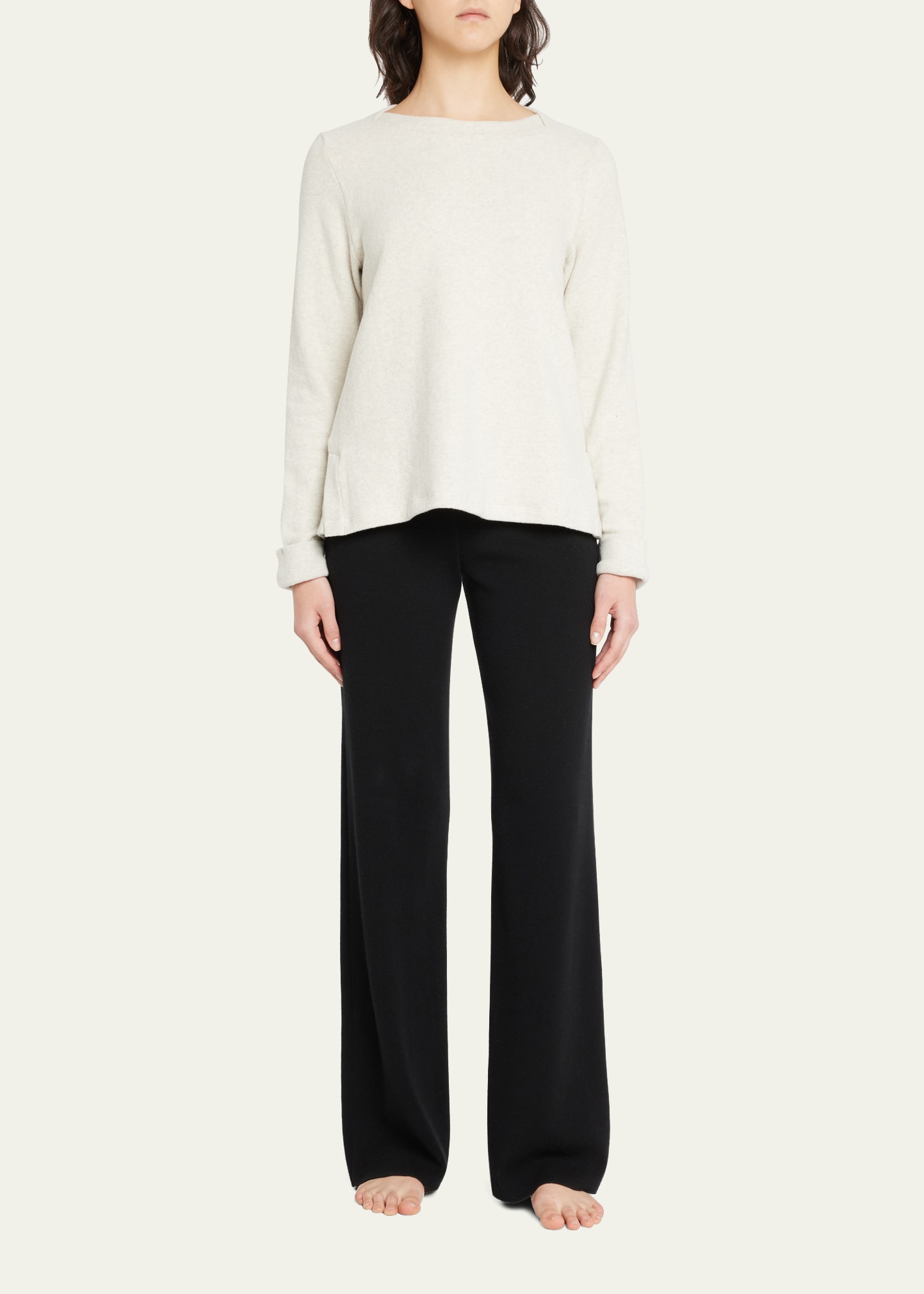 Hanro pullover featuring subtle pleat details Crew neckline Long sleeves Side slit hem Relaxed fit Pullover style Cotton/polyester/elastane Made in Portugal