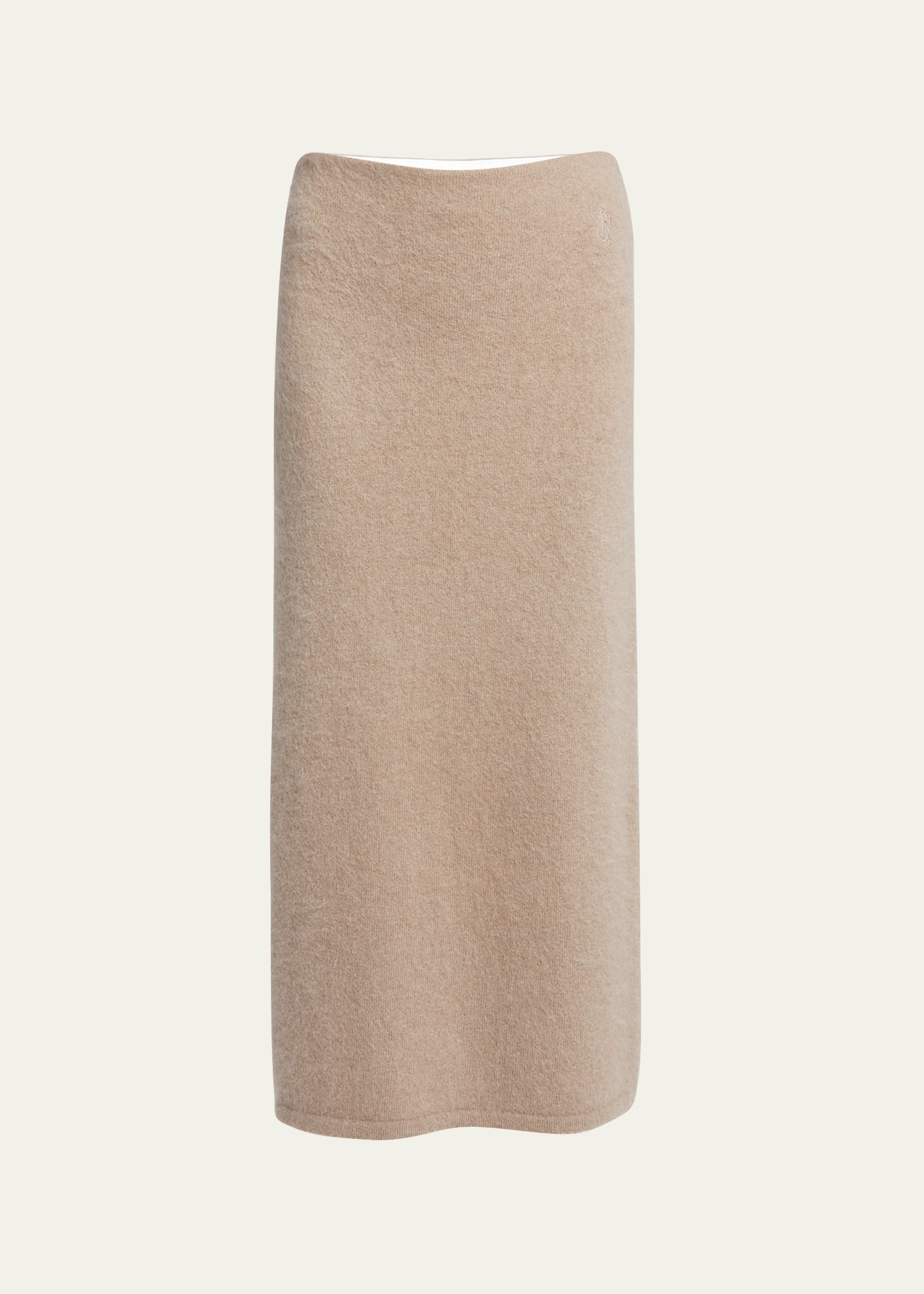 JW Anderson knit tube skirt featuring a side slit High waist Skirt falls straight from hip to hem Hem falls below the knee Ribbed hem Hidden closure Mohair/merino wool/nylon/polyamide Imported