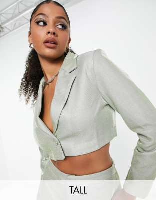 Simmi Tall glitter cropped blazer in sage - part of a set-Green