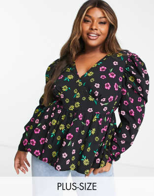 Top by Simply Be Waist-up dressing Floral design V-neck Long sleeves Button placket Regular fit