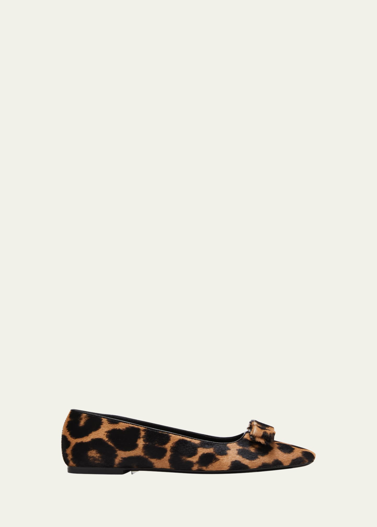 Ferragamo "Siwar" ballerina flats crafted from leopard-print leather 0.17 in / 5 mm flat heel Pointed toe Signature Vara bow at vamp Leather lining and sole Slip-on style Professional cleaning recommended Made in Italy
