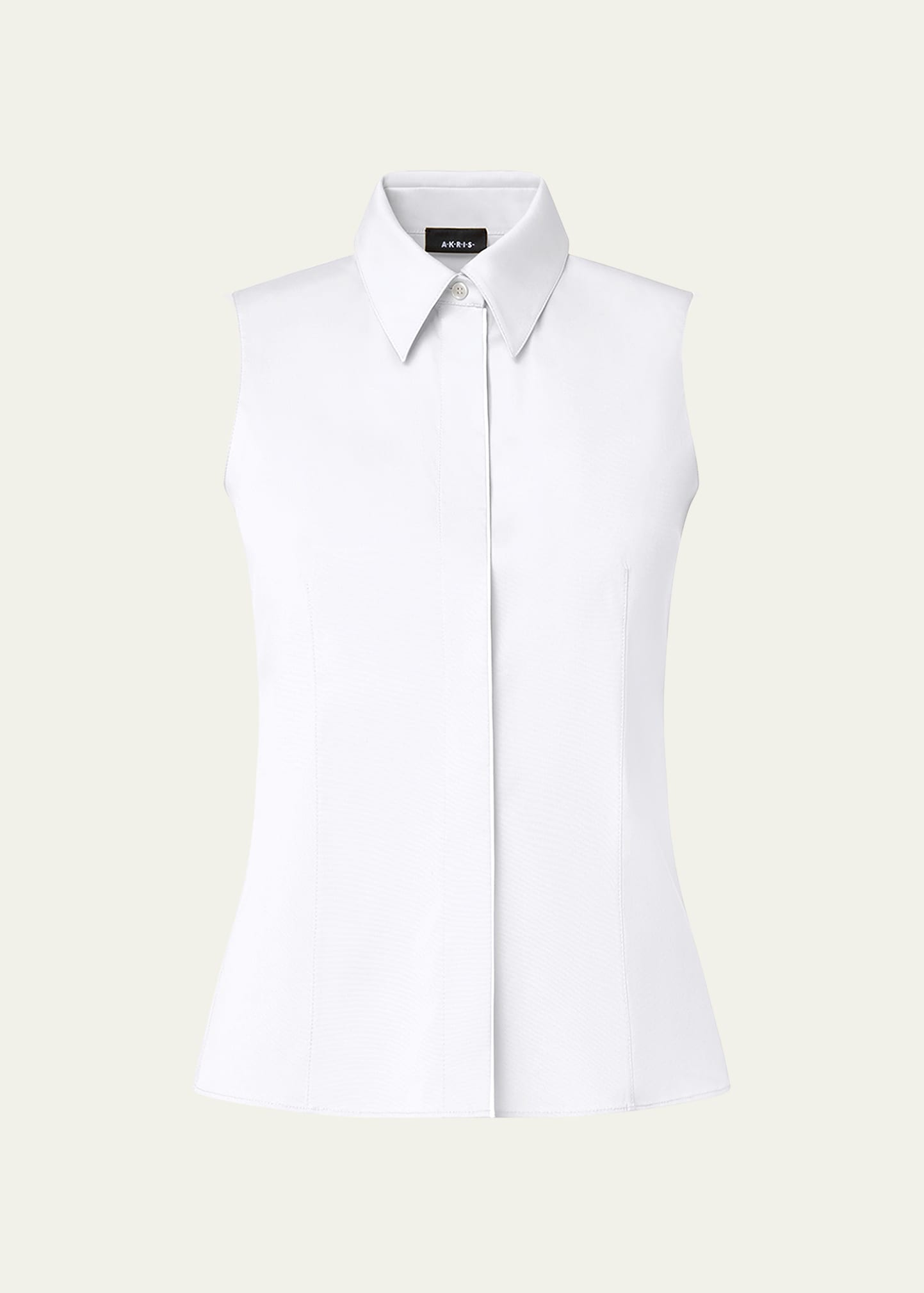 Akris blouse in cotton poplin stretch Point collar; concealed button front Sleeveless Fitted Cotton/nylon/elastane Dry clean Imported