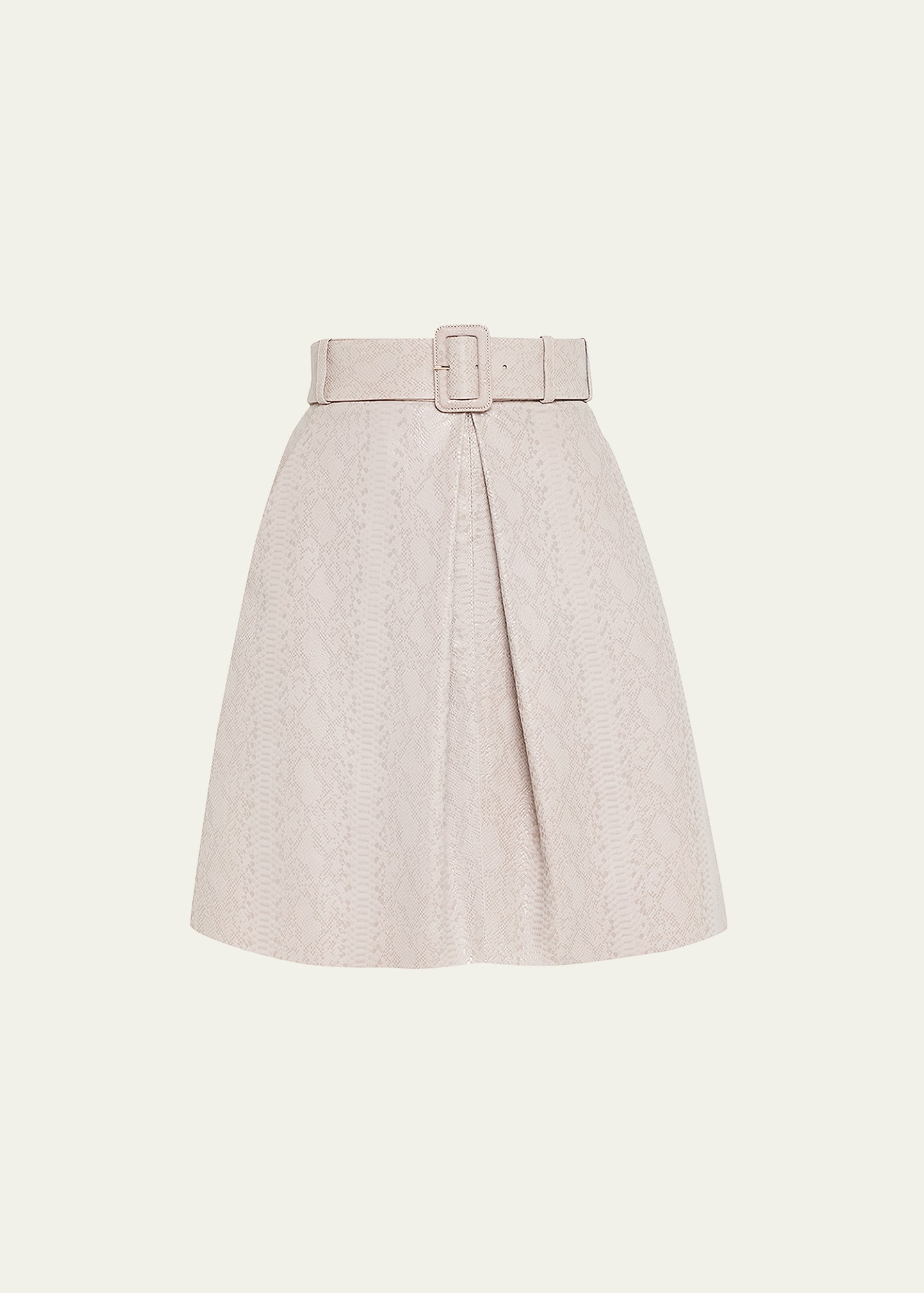 Giorgio Armani calf leather pleated skirt with a snake effect printed styling High rise; belted waist Side slip pockets Front center slit Above-the-knee hem Straight fit Polyamide Dry clean Made in Italy