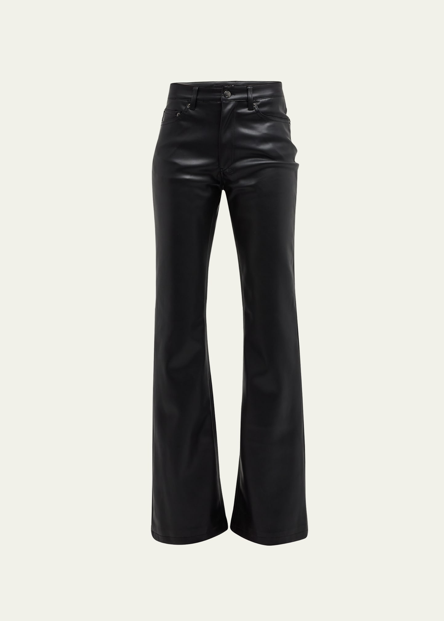 Ksubi "Soho" bootcut jeans in a premium comfort stretch faux leather Five-pocket style High rise Classic fit Full length Button/zip fly; belt loops Polyester/polyurethane Machine wash cold inside out Imported