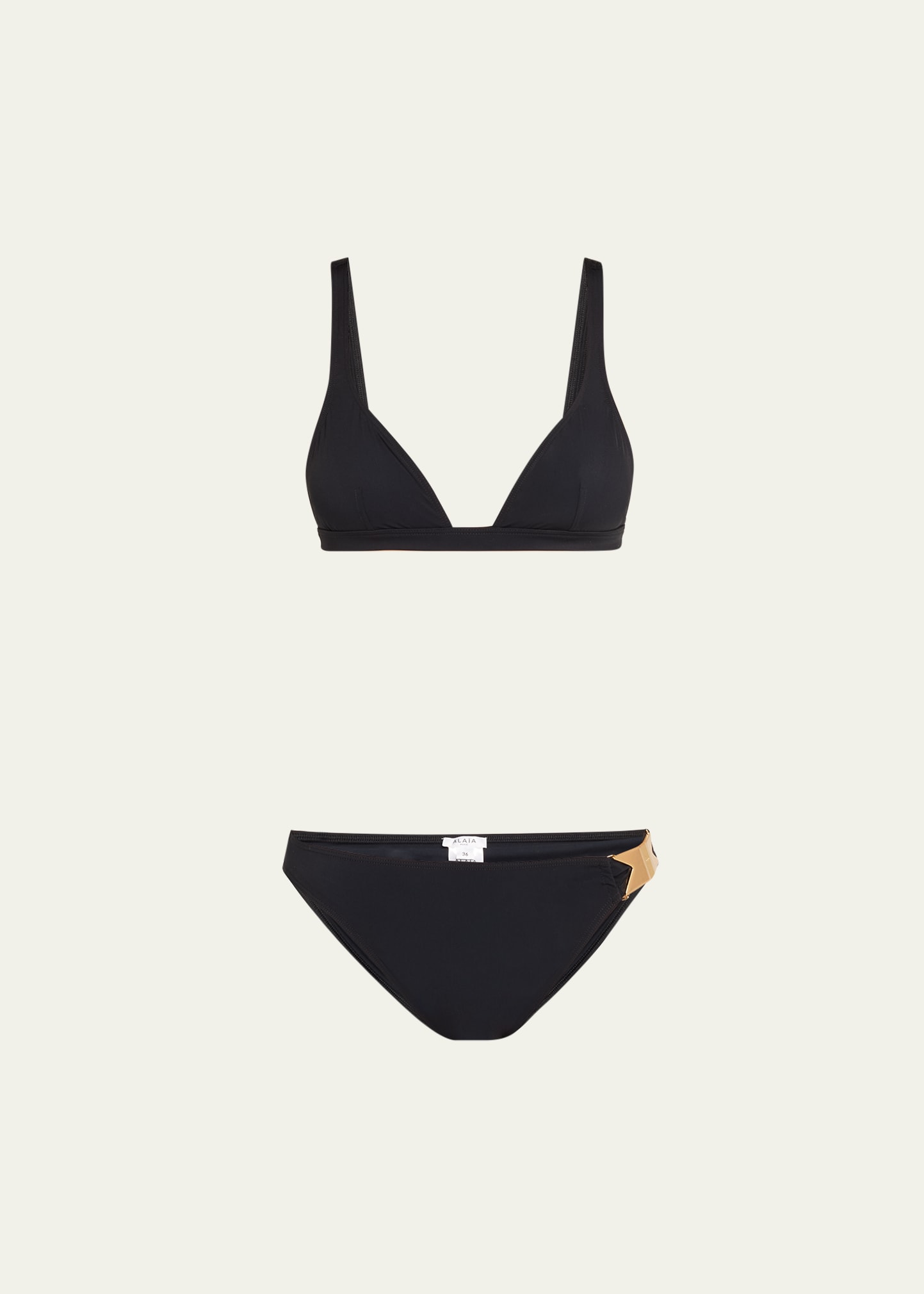 ALAIA solid bikini top V neckline Fixed triangle cups Adjustable straps Mid-back clasps Polyester/spandex Made in Italy