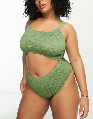 South Beach Curve Exclusive cut out crinkle swimsuit in khaki-Green
