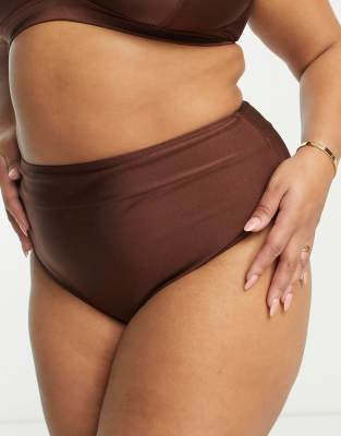 South Beach Curve Exclusive high waist bikini bottom in high shine brown