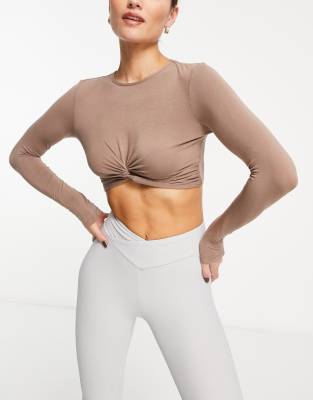 Tops by South Beach Rep and repeat Crew neck Twist front Long sleeves Cropped length Slim fit