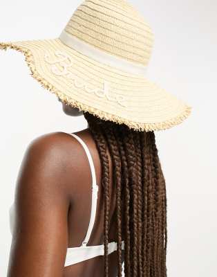 Accessories by South Beach Exclusive to ASOS 'Bride' embroidery Domed crown Contrast ribbon Wide brim