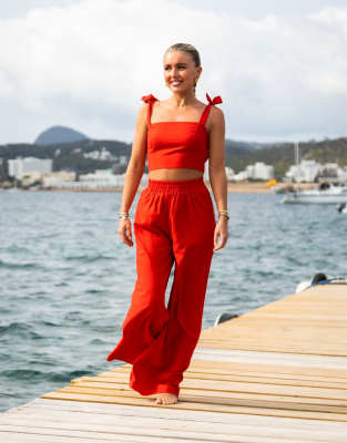 Tops by South Beach Exclusive to ASOS Pants sold separately Square neck Tie straps Shirred, stretch panel to back Cropped length Regular fit