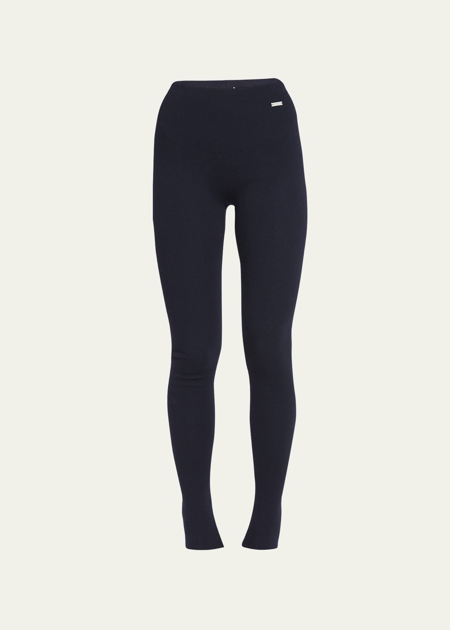 Ferragamo ribbed knit pants featuring a zipper split hem High rise; logo detail at front Full length Fitted Viscose Professional cleaning recommended Made in Italy