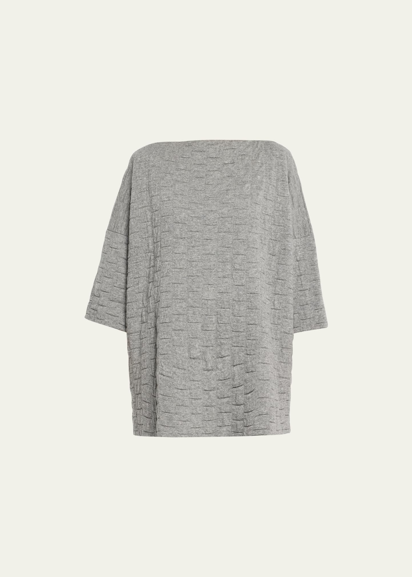 Eskandar knit top Boat neckline There-quarter sleeves Long length Pullover style Cashmere Imported