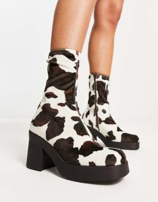 Shoes by Steve Madden Next stop: checkout Cow print Zip-side closure Round toe Platform sole Mid block heel