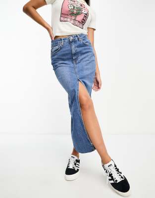 Skirts by Stradivarius *insert heart-eyes emoji here* Low rise Belt loops Five pockets Front slit Regular fit