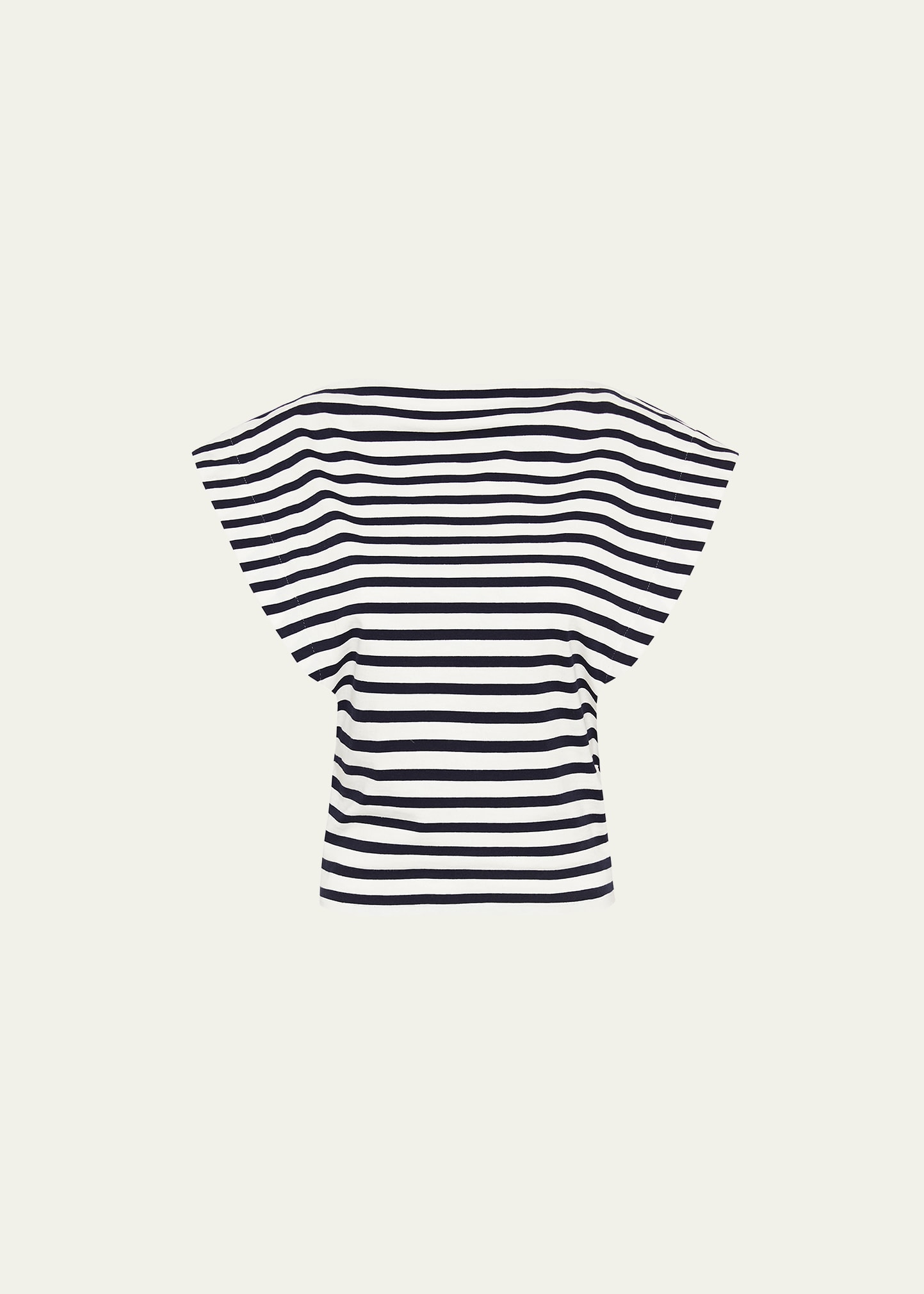 Matteau tee in a horizontally-striped print is elevated with strong, statement shoulders Boat neckline Short sleeves Relaxed fit Pullover style Cotton Made in Australia