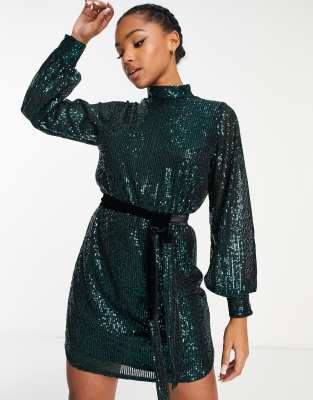 Dresses by Style Cheat More is more Sequinned design High neck Blouson sleeves Tie waist Button-keyhole back Regular fit