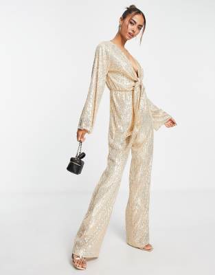 Jumpsuits & Rompers by Style Cheat No need for a dress to impress Plunge neck Tie front Long sleeves Wide leg Regular fit