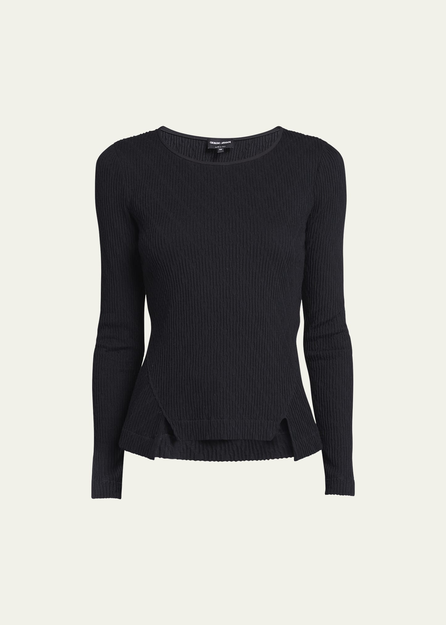 Giorgio Armani sweater in fair isle textured jersey jacquard Crew neckline Long sleeves Slim fit Side slits hem Pullover style Viscose/nylon/polyamide/cashmere Dry clean Made in Italy