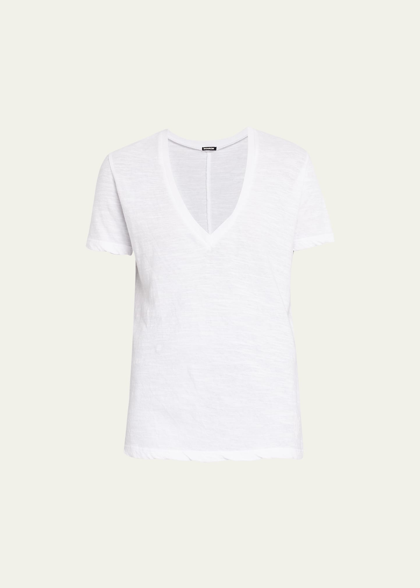 Monrow textured tri-blend tee features signature seamed detail down the spine V neckline Short sleeves Relaxed fit Pullover style Polyester/cotton/rayon Made in USA