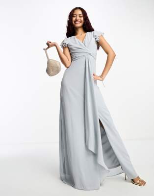 Dresses by TFNC Petite Bride approved Wrap front Flutter sleeves Back zip closure Thigh-high slit Regular fit