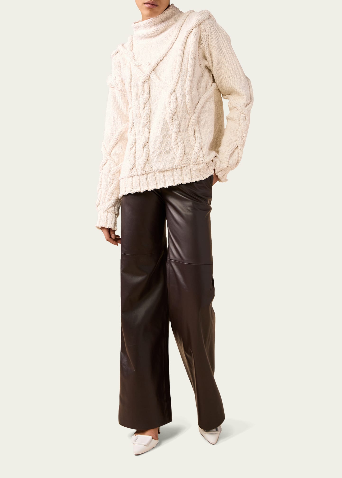 INTERIOR "The Ishmael" wool sweater featuring an abstract cable-knit styling Mock neckline Long sleeves Ribbed trim Mid-length Relaxed fit Pullover style Cotton/merino wool Imported